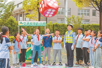 5月16日,江蘇省南通市通州區(qū)公安局與轄區(qū)張謇學(xué)校聯(lián)合舉辦“萌娃進(jìn)警營(yíng)、安全記心中”警營(yíng)開(kāi)放日活動(dòng),小學(xué)生們走進(jìn)交通安全教育基地,通過(guò)體驗(yàn)交通安全飛行棋、交通標(biāo)志翻翻看、VR交通模擬駕駛等項(xiàng)目,沉浸式學(xué)習(xí)交通安全知識(shí)。翟慧勇 攝