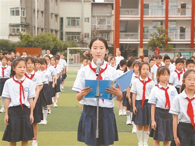 學(xué)生代表領(lǐng)讀愛路護路倡議書。 施華瓊 攝