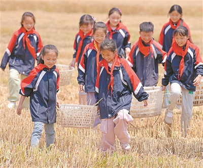 近日,江蘇省海安市墩頭鎮(zhèn)吉慶小學(xué)組織學(xué)生走進(jìn)麥田,撿拾收割機(jī)過后散落的麥穗。讓學(xué)生感受“粒粒皆辛苦”,培養(yǎng)學(xué)生熱愛勞動、珍惜糧食的良好品質(zhì)。周強(qiáng) 丁春梅 攝