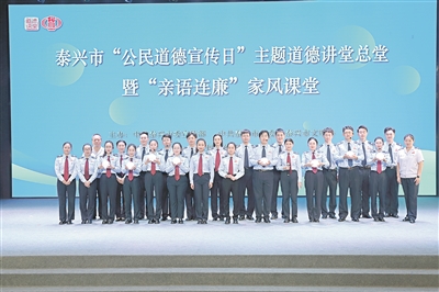 泰興市稅務(wù)局干部職工參加泰興市“公民道德宣傳日”主題道德講堂總堂暨“親語連廉”家風(fēng)課堂宣講。