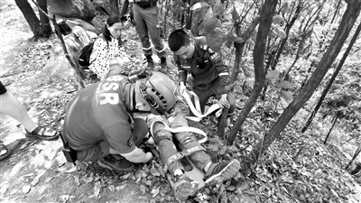 登山人員受傷,邱濤(右一)在現(xiàn)場(chǎng)救助。 本人供圖