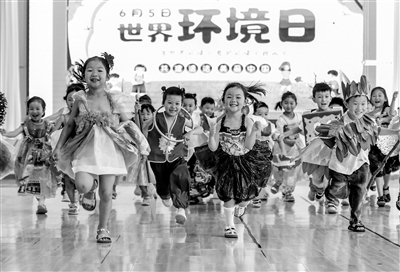 今年6月5日是第54個世界環(huán)境日,當(dāng)日,湖南省永州市道縣城東幼兒園開展了以“廢舊物品變廢為寶”為主題的低碳環(huán)保主題活動,孩子們利用家里的布料、塑料袋、快遞盒、報紙、紙箱以及樹葉等材料,在老師的指導(dǎo)下制作相關(guān)服飾,培養(yǎng)小朋友從小學(xué)會保護(hù)環(huán)境、節(jié)約資源的意識。圖為孩子們身穿用廢舊材料及樹葉等制成的服飾走秀。