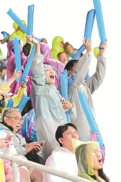 觀眾為球隊(duì)吶喊支持。吳俊 攝