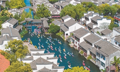 6月21日,2025年第七屆南潯古鎮(zhèn)槳板公開賽在浙江省湖州市南潯古鎮(zhèn)景區(qū)舉行,來自各地的眾多選手參與競(jìng)技角逐。在粉墻黛瓦的江南古鎮(zhèn)小橋流水間奮力揮槳逐浪,上演“速度與激情”,呈現(xiàn)出一場(chǎng)精彩絕倫的水上運(yùn)動(dòng)盛會(huì)。計(jì)海新 攝