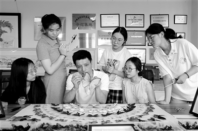 6月26日,清華大學“江韻雙遺”暑期思政實踐團隊走進四川省瀘州市納溪區(qū)永寧街道新時代文明實踐中心的“非遺蝶畫”傳承基地,在中國好人、四川工匠、四川非遺瀘州蝴蝶畫傳承人王世宏的指導下,學習體驗蝴蝶畫的制作過程,感受非物質(zhì)文化遺產(chǎn)的獨特魅力。圖為王世宏正在展示蝴蝶畫制作工藝。