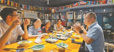 餃子館由此慢慢變成了一個(gè)文化聚集地?!叭r(nóng)”專(zhuān)家溫鐵軍教授也成了這里的常客;“鄉(xiāng)村訪(fǎng)問(wèn)學(xué)者”工作坊吸引了海內(nèi)外學(xué)者前來(lái)交流。今年4月,這家餃子館被評(píng)為重慶市“十佳最美閱讀空間”,是北碚區(qū)唯一獲此稱(chēng)號(hào)的社區(qū)餐館。