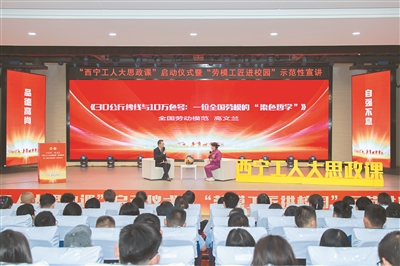 今年,西寧市總工會(huì)啟動(dòng)職工思想政治引領(lǐng)提升行動(dòng):組建“娘家人”職工宣講團(tuán),成員包括專家教授、先進(jìn)典型,他們挖掘老照片、老物件背后的故事——有三線建設(shè)者的高原奉獻(xiàn),有產(chǎn)業(yè)“四地”建設(shè)者的青春熱血。宣講團(tuán)走進(jìn)機(jī)關(guān)、企業(yè)、學(xué)校、商圈、村社、廣場(chǎng),開展39場(chǎng)“行走的思政課”,1.2萬人次職工在理論宣講、情景演繹、文藝匯演中產(chǎn)生強(qiáng)烈共鳴。5月底,“西寧工人大思政課”啟動(dòng)儀式暨“勞模工匠進(jìn)校園”活動(dòng)在西寧城市職業(yè)技術(shù)學(xué)院舉行,全國(guó)勞動(dòng)模范高文蘭、張福生等用“技能創(chuàng)造品質(zhì)生活”的故事,激勵(lì)500余名師生和產(chǎn)業(yè)工人“走技能成才之路”,網(wǎng)絡(luò)直播觀看量破12萬人次。