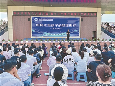 3月16日,在神木市第十三中學的“家長學?!崩?,一場關于“讀懂青春 規(guī)劃未來”的專題講座在學校操場開講。作為項目首批示范校,這里依托清華北大狀元成長案例研發(fā)了課程體系,線上110節(jié)微課程隨時學,線下8場沙龍面對面聊,以“互聯(lián)網(wǎng)+”讓家庭教育打破時空界限,已讓90%的參與家長掌握了科學育兒方法。今年,第七中學示范校的啟動,將實現(xiàn)中小學教育全覆蓋。