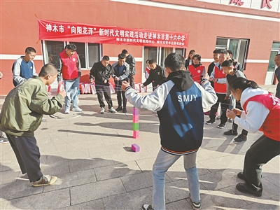 神木市“向陽花開”新時代文明實踐活動走進神木市第十三中學。(神木市委宣傳部供圖)