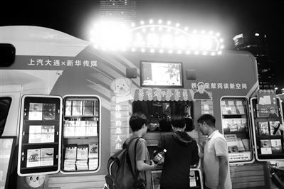 “余華文學(xué)小賣部限時(shí)營(yíng)業(yè)中!打卡《活著》手稿,定制文創(chuàng)限量贈(zèng)送……”循環(huán)播放的喇叭聲里,“書香上海流動(dòng)書房”花車前人頭攢動(dòng)。