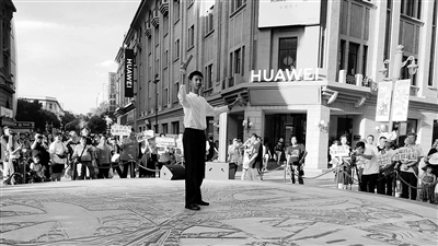 “打掃干凈”還不夠。和平區(qū)百年老巷兆豐路胡同的灰墻上,社區(qū)畫師正用畫筆施展“魔法”——“天津之眼”的輪廓在墻上逐漸清晰;在和平區(qū)承德道28號(hào),天津市老年人大學(xué)的老師帶著四平東道小學(xué)的孩子們?cè)谝幻胬蠅ι侠L制環(huán)保主題的圖案。