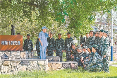 8月27日,安徽省蕪湖市繁昌區(qū)人武部會(huì)同區(qū)教育局組織專武干部和學(xué)生代表,前往孫村鎮(zhèn)中分村新四軍第三支隊(duì)司令部舊址開展“迎九三閱兵·鑄青春國防”主題教育活動(dòng)?;顒?dòng)通過參觀新四軍第三支隊(duì)司令部舊址和聆聽新四軍的抗戰(zhàn)故事,讓青少年在重溫革命歷史中增強(qiáng)國防意識(shí),傳承紅色基因。圖為專武干部和學(xué)生聆聽82歲老黨員徐孝旺講述新四軍抗戰(zhàn)故事。肖本祥 攝