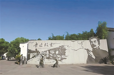 李以泰豎排呈現(xiàn)的原畫“挪”到景區(qū)入口,以橫排的形式怎么呈現(xiàn)?這個(gè)難題卻被畫中自帶的煙霧輕松化解。“景墻橫向延展,一側(cè)是魯迅故里整體形象的白描,另一側(cè)是‘魯迅夾煙’形象,煙霧恰恰能銜接這兩個(gè)畫面主體。”裘士雄回憶,大家覺得這個(gè)設(shè)計(jì)讓人眼前一亮,讓畫面鮮活且富有整體性。