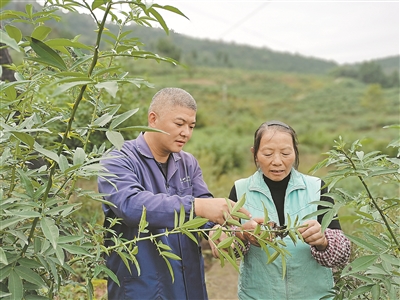 游堅(jiān)強(qiáng)(左)為村民作技術(shù)指導(dǎo)。