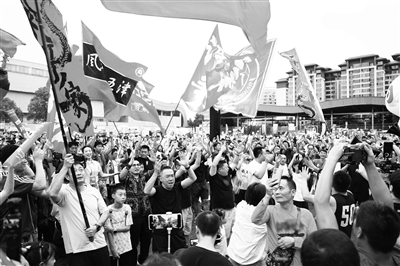 賽前預(yù)熱活動(dòng)中的成都隊(duì)球迷。 本報(bào)記者  劉旭飛 攝