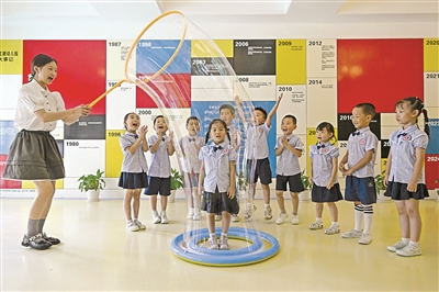 9月17日,安徽省合肥市廬陽區(qū)長江路幼兒園教育集團(tuán)總園開展“科普向未來”全國科普日主題活動。通過體驗(yàn)趣味科普器材、觀看科學(xué)小實(shí)驗(yàn)等環(huán)節(jié)讓小朋友零距離感受科技帶來的樂趣和魅力。圖為小朋友正在體驗(yàn)科普設(shè)備,學(xué)習(xí)科技知識。 趙明 攝