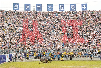 9月20日,貴州省黔東南苗族侗族自治州從江縣丙妹鎮(zhèn)松學(xué)斗牛塘舉行“貴州牛·超級?!眰鹘y(tǒng)斗牛民俗活動,吸引眾多村民和游客前來觀看。斗牛是當(dāng)?shù)孛缍比罕婎H為喜愛的一項民間文娛競技活動。每年秋收結(jié)束至來年春耕前,當(dāng)?shù)孛糠曛苣┒紩e辦斗牛比賽。圖為活動現(xiàn)場。羅京來 攝