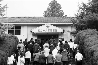 國慶假期,游客在參觀安徽岳西縣鷂落坪國家級自然保護(hù)區(qū)內(nèi)的紅二十八軍舊址群。方好 攝
