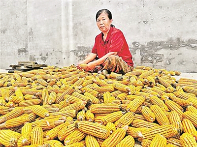 張新雙在家中收拾糧食。 (受訪者供圖)
