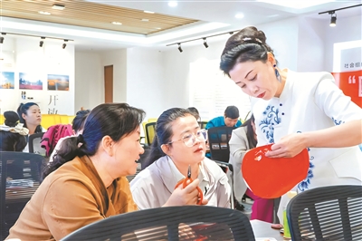 城北區(qū)“蘭花花”非遺中心內(nèi),青海省青繡技藝創(chuàng)新領(lǐng)銜人單永武帶領(lǐng)團(tuán)隊(duì)創(chuàng)作融入社會(huì)主義核心價(jià)值觀的剪紙作品。她推動(dòng)“非遺進(jìn)校園”“非遺進(jìn)大學(xué)”,每學(xué)期40位教師深入課堂傳授技藝,讓家長們從最初的“針線活無用論”轉(zhuǎn)變?yōu)橹鲃?dòng)參與?!拔磥硪ㄟ^電商平臺(tái)把青繡手工藝品賣到全國,帶領(lǐng)鄉(xiāng)村婦女用針線繡出好日子?!眴斡牢涞囊?guī)劃里,非遺傳承與鄉(xiāng)村振興的藍(lán)圖正徐徐展開。
