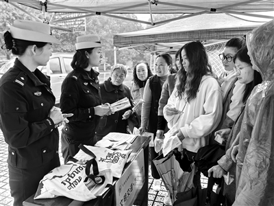 交警向居民講解交通安全知識(shí),并強(qiáng)調(diào)冬季出行注意事項(xiàng)。
