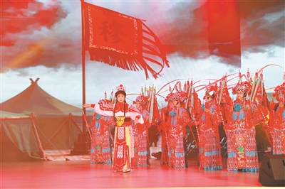 市級(jí)文化特派員況艷帶領(lǐng)團(tuán)隊(duì)表演《穆桂英掛帥》。