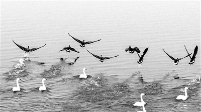 近年來(lái),安徽省含山縣聚焦河湖治理、森林提質(zhì)、濕地綠化,通過(guò)系統(tǒng)治理優(yōu)化生態(tài)基底,推動(dòng)昭關(guān)湖水質(zhì)改善、生物多樣性提升。如今,越冬天鵝數(shù)量逐年遞增,這片天鵝的棲息地也成為市民游客青睞的景觀帶,盡顯人與自然和諧共生之美。圖為11月20日,含山縣昭關(guān)湖迎來(lái)大批越冬天鵝。歐宗濤 攝