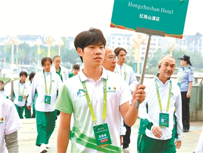 第十屆世界傳統(tǒng)武術(shù)錦標(biāo)賽志愿者為外國(guó)參賽者帶隊(duì)。