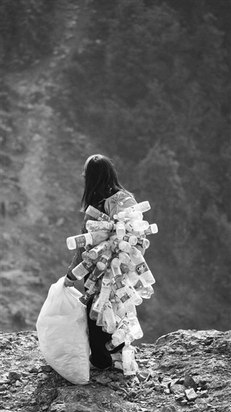 爬山撿垃圾3年 浙江女子掛滿瓶子跑下山獲贊