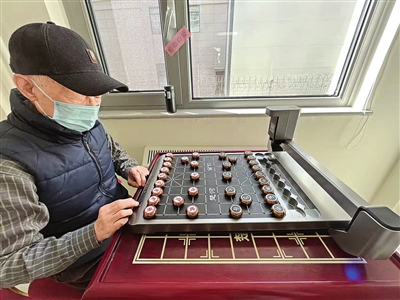 北京市海淀區(qū)羊坊街道新華社皇亭子社區(qū)內(nèi),老人在和AI對(duì)弈。孫諾攝