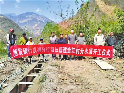 浦發(fā)銀行成都分行在鄉(xiāng)村振興行動中主動作為,援建定點幫扶村——金江村分水渠項目。