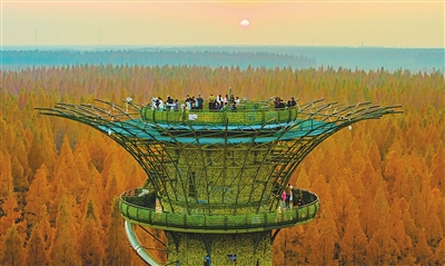 近期,江蘇省鹽城市東臺黃海森林公園萬畝水杉林迎來最佳觀賞期,成為冬季生態(tài)休閑旅游的網(wǎng)紅打卡地,吸引眾多游客前來游玩。圖為12月7日,游客在東臺黃海森林公園游玩。計海新 攝