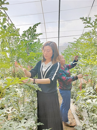 “陜西好人”郝艷(左)在果蔬大棚內(nèi)勞作。