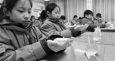 12月11日,江蘇省連云港市建國路小學(xué)組織開展“國家公祭日”主題活動,通過小學(xué)生折千紙鶴、點(diǎn)燃蠟燭、聆聽老師講解,緬懷南京大屠殺遇難同胞,寄托哀思,培養(yǎng)銘記歷史、勿忘國恥、珍愛和平、圓夢中華的愛國情懷。耿玉和 攝
