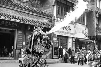 新年臨近,四川省內(nèi)江市東興區(qū)開展川劇惠民巡演活動(dòng),讓群眾在家門口樂享戲曲“大餐”,豐富群眾文化生活。圖為12月16日,在內(nèi)江市東興區(qū)東興街道東興社區(qū),川劇演員為群眾表演川劇絕活變臉和吐火。