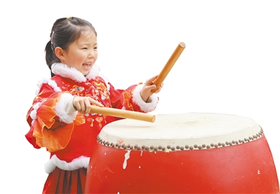 12月30日,浙江省湖州市德清縣乾元鎮(zhèn)第一幼兒園開展“多彩民俗迎新年”主題活動(dòng)。圖為小朋友在打鼓。倪立芳 攝