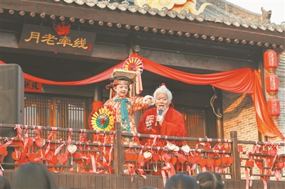 ①河南省洛陽市洛邑古城景區(qū)“月老牽線”活動現(xiàn)場。(洛邑古城景區(qū)供圖)