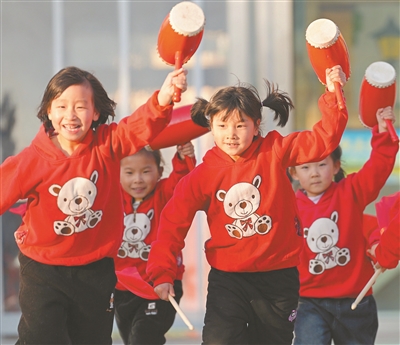 ②2025年12月31日,江蘇省海安市墩頭鎮(zhèn)吉慶幼兒園的孩子們舞動非遺“海安花鼓”,迎接新年的到來。周強(qiáng) 攝