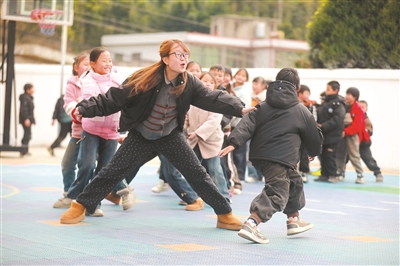 貴州省黔西市五里布依族苗族鄉(xiāng)茶林小學(xué)2002年建成投用。20多年過去了,設(shè)施逐漸陳舊,出現(xiàn)了屋面漏水等情況。2025年,當(dāng)?shù)卣o扣茶林小學(xué)基礎(chǔ)設(shè)施改造進行提案,后得益于市政協(xié)專項資金22萬元支持,對教學(xué)點進行全面改造,讓山里的孩子們安心讀書。圖為1月8日,在茶林小學(xué)教學(xué)點,老師帶領(lǐng)學(xué)生課間做游戲。 周訓(xùn)超 攝