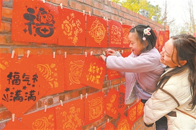 1月17日,四川省閬中市文成鎮(zhèn)嘉陵江畔的一戶農(nóng)家樂(lè)內(nèi)充滿了歡聲笑語(yǔ)。閬中市總工會(huì)打造的公益服務(wù)平臺(tái)“閬工學(xué)堂”組織70個(gè)家庭在此開(kāi)展親子活動(dòng),通過(guò)印福字、投壺、寫春聯(lián)等活動(dòng),讓家長(zhǎng)和孩子們零距離體驗(yàn)傳統(tǒng)民俗的魅力。圖為孩子們?cè)诩议L(zhǎng)的陪同下參加活動(dòng)。王玉貴 攝