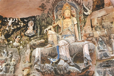 安岳石窟毗盧洞紫竹觀音。(安岳石窟數(shù)字展示中心供圖)