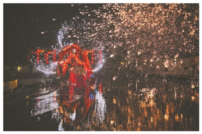 成都青羊區(qū)清源社區(qū)舞龍、打鐵花表演。(成都市文明辦供圖)