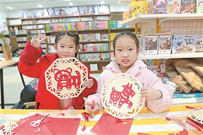 近日,重慶新華書店沙坪壩書城、沙坪壩區(qū)圖書館、沙坪壩區(qū)婦聯(lián)聯(lián)合開展“書香過大年 集市過新春”主題活動(dòng),20多名中小學(xué)生和家長在趣味集市參加了非遺剪紙、春聯(lián)冰箱貼、魚燈DIY、手工扎花等沉浸式文化體驗(yàn)項(xiàng)目,感受非遺魅力。圖為活動(dòng)現(xiàn)場(chǎng)。趙杰昌 攝