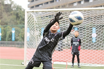 重慶各地的學生來到運動館、戶外運動場參加各類體育項目。圖為寒假中,沙坪壩區(qū)融匯沙坪壩小學的學生參加足球訓(xùn)練。孫凱芳 攝