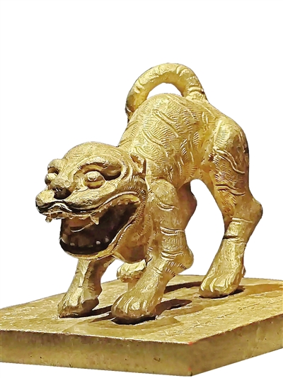 眾多精美的文物中,不能不提“蜀世子寶”金印。據(jù)趙麗賢介紹,這枚“蜀世子寶”金印出水時(shí)碎成五塊,散落范圍超過(guò)30米,考古隊(duì)員們用了半個(gè)月才找齊全部殘塊,其拼合過(guò)程本身就是一個(gè)考古傳奇,“這枚金印總重達(dá)16斤,含金量高達(dá)95%?!?/FONT>