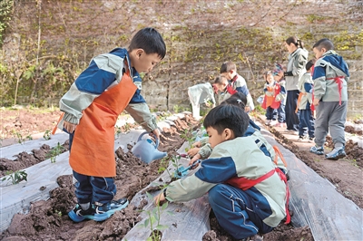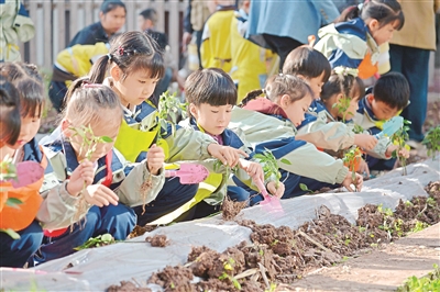 3月11日,四川省內(nèi)江市東興區(qū)陽(yáng)光幼兒園以“綠意萌動(dòng) 播種希望”為主題,組織全園幼兒開(kāi)展趣味春播實(shí)踐活動(dòng),讓孩子們?cè)趧?dòng)手體驗(yàn)中感受農(nóng)耕的辛苦與樂(lè)趣。圖為當(dāng)天,內(nèi)江市東興區(qū)陽(yáng)光幼兒園,孩子們?cè)趨⒓尤の洞翰?shí)踐活動(dòng)。