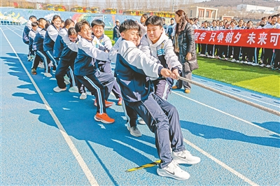 開學(xué)以來,山東省淄博市淄川經(jīng)濟(jì)開發(fā)區(qū)實(shí)驗(yàn)學(xué)校全面落實(shí)“健康第一”教育理念,利用大課間扎實(shí)開展陽(yáng)光體育活動(dòng),組織開展拔河、足球、籃球、跑操等多樣化項(xiàng)目,確保學(xué)生每日2小時(shí)體育鍛煉時(shí)間,助力學(xué)生健康成長(zhǎng)。圖為3月16日,淄川經(jīng)濟(jì)開發(fā)區(qū)實(shí)驗(yàn)學(xué)校在課間組織學(xué)生舉行拔河比賽。