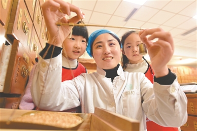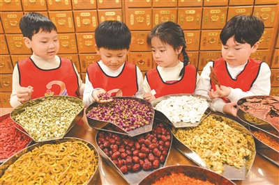 3月16日,江蘇省連云港市東??h第三幼兒園組織小朋友走進(jìn)中醫(yī)院,通過(guò)辨識(shí)中藥材、體驗(yàn)飲片配伍、參與藥材炮制等環(huán)節(jié),親身感受中醫(yī)藥文化的博大精深。張玲 攝