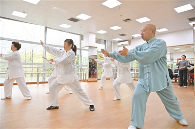 3月21日是首個“國際太極拳日”。為深入推廣太極拳運(yùn)動,弘揚(yáng)中華優(yōu)秀傳統(tǒng)文化,重慶各地積極開展太極拳進(jìn)社區(qū)、進(jìn)學(xué)校等活動,推動太極拳運(yùn)動的廣泛普及和發(fā)展。圖為3月20日,在重慶市老年大學(xué)重慶圖書館分校,學(xué)員們練習(xí)太極拳。孫凱芳 攝