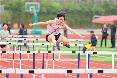 3月26日,四川省廣安市第十二屆學(xué)生運動會暨2026年青少年錦標(biāo)賽在華鎣市開幕。運動會設(shè)置田徑、游泳、足球、籃球、排球等12個競賽項目,覆蓋高中、初中、小學(xué)各年齡階段。來自廣安市各縣(市、區(qū))的青少年運動員將在3月至5月的賽程中,共同參與這場體育盛會。圖為3月27日,選手在賽場上參加跨欄比賽。邱海鷹 攝